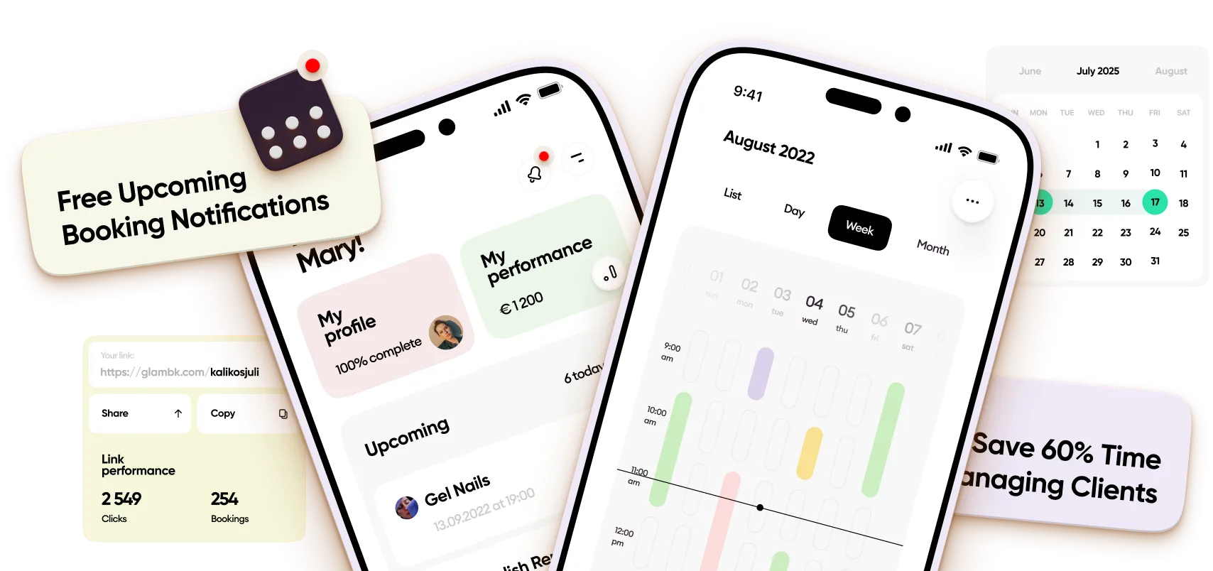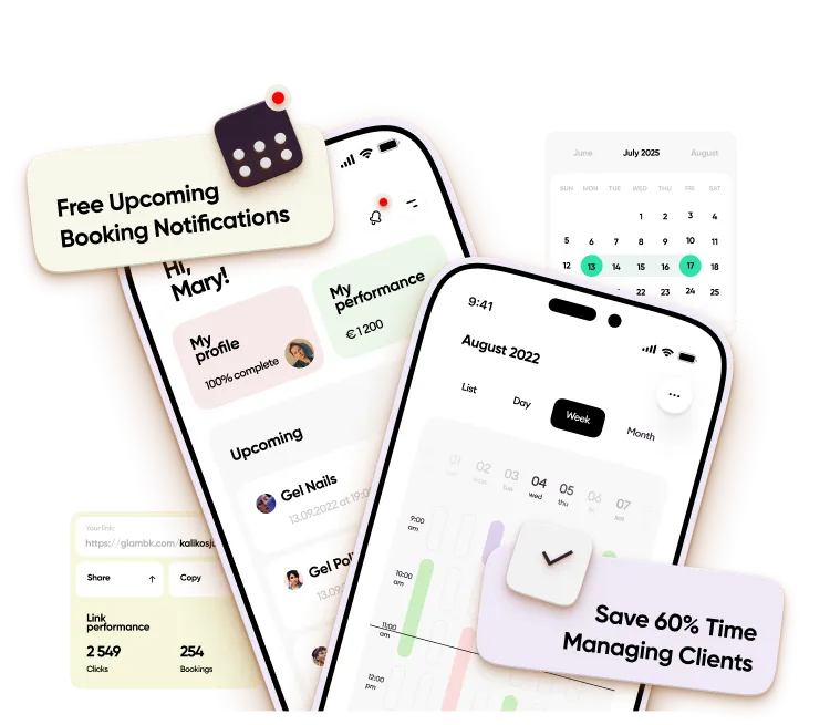 Glambook nutzt automatische Erinnerungen, Terminbestätigungen und optionale Anzahlungen, damit Kund:innen zuverlässig erscheinen und deine Zeit respektieren.