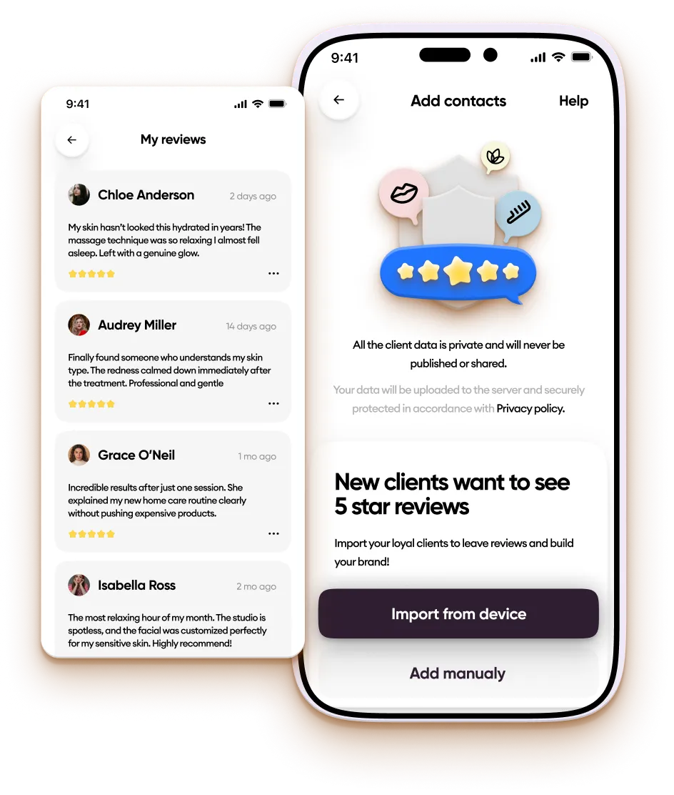 Collect verified 5-star reviews that boost trust, improve your ranking, and bring new clients — even when you’re offline.